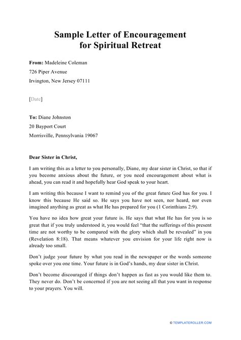 Read Online SAMPLE LETTERS OF ENCOURAGEMENT FOR SPIRITUAL RETREATS rtf